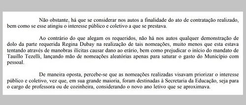 A juíza Gabriela Borri Aranda julgou improcedente ação do prefeito Tauillo Tezelli contra a ex-prefeita Regina Dubay.