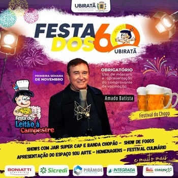 A prefeitura divulgou nesta quinta-feira a programação que vai comemorar os 60 anos de Ubiratã, no próximo dia 4.
