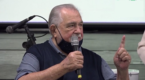 Augustinho Vecchi, ex-prefeito de Campo Mourão, ao ser homenageado em evento que comemorou os 40 anos de inauguração da Casa da Cultura. Ele era o prefeito quando o espaço foi inaugurado, em 8 de outubro de 1981; nesta quinta-feira à noite.