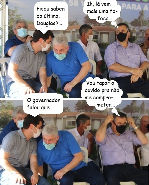 Ainda tem cliques da visita do governador Ratinho Jr a Campo Mourão, na sexta-feira passada. Desta vez, os deputados Alexandre Curi e Douglas Fabrício aparecem colocando a conversa em dia e observados pelo secretário de Estado da Saúde Beto Preto. Ao fundo, o chefe da Regional de Saúde, Eurivelton Siqueira, e o presidente da Câmara, Jadir Pepita.