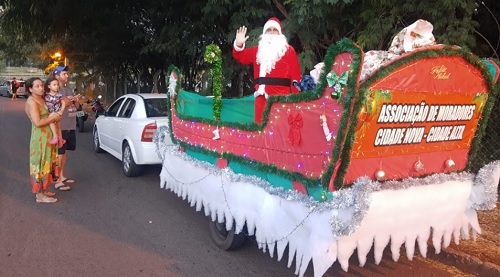 Olha o trenó do Papai Noel montado pela Associação de Moradores do Cidade Nova e Cidade Alta, em Campo Mourão. A chegada do "bom velhino" aconteceu na sexta-feira. Tudo organizado pela comunidade. O trenó passou pelo Moradia Verdes Campos, Cidade Alta 1 e 2, Residencial Arnaldo Bronzel 1 e 2, Forturnato Perdoncini e Cidade Nova. Foram distribuídos 225 quilos de balas.