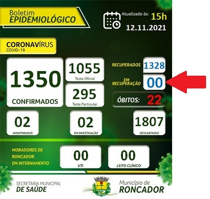 Mais um município da região zerou, nesta sexta-feira, o número de casos ativos de covid-19. Desta vez foi Roncador. A cidade teve 1.350 confirmações da doença desde o início da pandemia, sendo que houve 1.328 recuperações e 22 mortes. É a primeira vez, desde que a epidemia começou em Roncador, que o município ficam zerado.