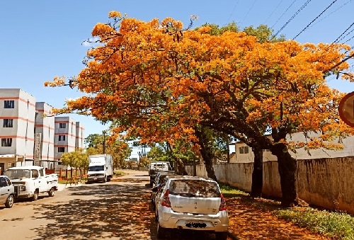 Flamboyant colorido na rua Pitanga, em Campo Mourão. Foto: Irineu Ricardo