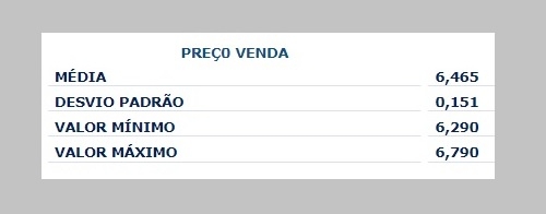 O etanol também está mais caro. O litro mais barato saltou de R$ 5,09 para R$ 5,23. O mais caro foi de R$ 5,61 para R$ 5,69. O valor médio aumentou de R$ 5,22 para R$ 5,39.