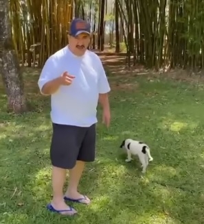 "Muito obrigado ao Márcio Nunes, que me deu de presente este cachorro. Um presentaço, a gente nunca mais esquece".