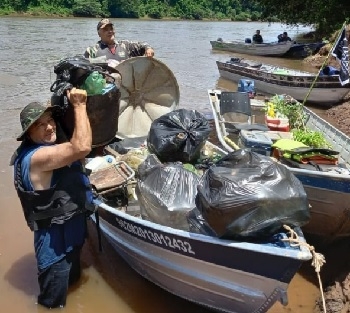 "Além de plantar árvores, o rally fluvial de Fênix retirou quase 3 caminhões de lixo do rio Ivaí nesse feriadão. Parabéns aos participantes! E para quem joga lixo no rio, o que dizer?"