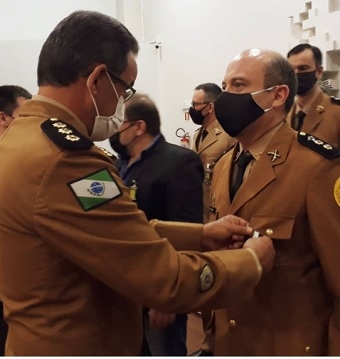 O comandante do 11° BPM, tenente-coronel Cleverson Vidal Veiga, recebeu nesta quarta-feira medalha de mérito do 3° Comando Regional de Policia Militar. Foi em Maringá, em evento que comemorou os 11 anos do 3°CRPM. Cleverson vai deixar o comando do batalhão de Campo Mourão no próximo dia 15. No dia 23 se aposenta.