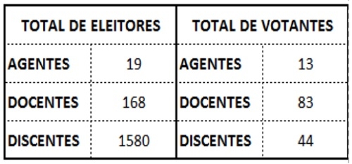 Dos 1.580 alunos da insituição, apenas 44 votaram (três votos foram em branco).