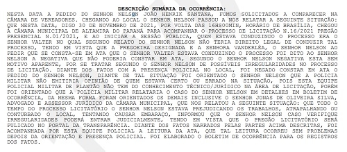 A Polícia Militar foi chamada para acomanhar licitação da Câmara de Altamira do Paraná para a compra de carro.
