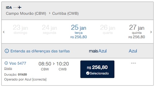 Os voos Campo Mourão-Curitiba pela Azul começam só em 25 de janeiro, mas já é possível comprar a passagem.