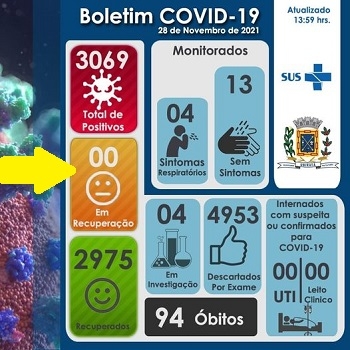 Ubiratã está sem nenhum caso ativo de covid-19. "Zerou" no boletim deste domingo. O município já teve 3.069 casos desde o início da pandemia, com 2.975 recuperados e 94 mortes. Na região, só Campo Mourão tem mais confirmações e óbitos. Outras sete cidades da Comcam estão sem casos ativos - Altamira do Paraná, Boa Esperança, Campina da Lagoa, Farol, Nova Cantu, Quarto Centenário e Roncador.