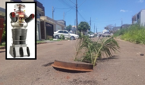 "Tampa solta na rua das Quaresmeiras, no jardim Botânico I. Há 40 dias foi feito o pedido de providências na prefeitura".