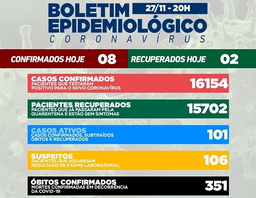 Campo Mourão teve mais oito casos de covid-19 confirmados neste sábado. Os recuperados foram dois. Com isso, o número de casos ativo subiu para 101. Na ala covid dos hospitais há seis pacientes internados, sendo quatro na unidade de terapia intensiva. Dos seis, dois são de Campo Mourão - um na enfermaria e outro na UTI.