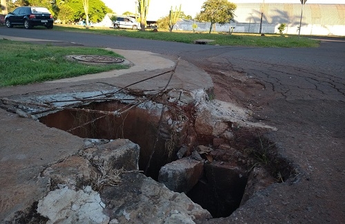 Situação do bueiro no cruzamento das ruas Dr Luiz Carlos Klank e Dr Carlos Boenig.