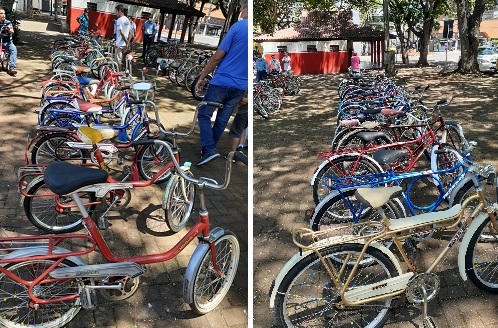 Mais de 60 bicicletas participaram, neste domingo, do Encontro de Bicicletas Antigas realizado em Campo Mourão. Não faltaram, é claro, clássicos como a Monareta e a Barra Dupla Circular. Veio "magrela" até de Araruna e Luiziana. O evento aconteceu na praça São José e superou as expectativas dos organizadores.