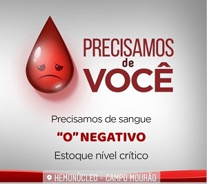 O Hemonúcleo de Campo Mourão está precisando com urgência de sangue tipo O negativo. O estoque atingiu nível crítico. Quem puder ajudar deve agendar um horário para a doação.