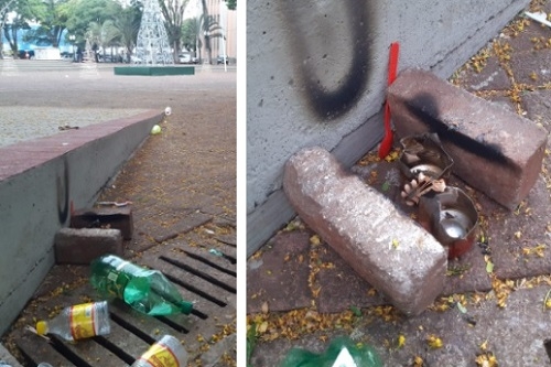 A sujeira e o fogãozinho improvisado para o consumo de crack deixaram o coreto, mas seguem nas praças centrais de Campo Mourão.