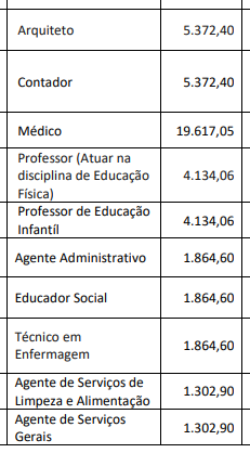 Os salários variam de R$ 1,3 mil a R$ 19,6 mil.