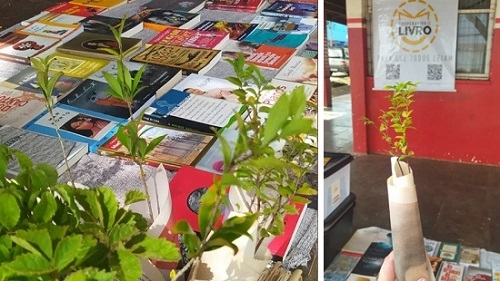 "Os calores insuportáveis dos últimos dias nos fizeram refletir que, sim, precisamos fazer alguma coisa por mínima que seja e é por isso que distibuiremos uma muda de árvore para quem emprestar livros conosco".