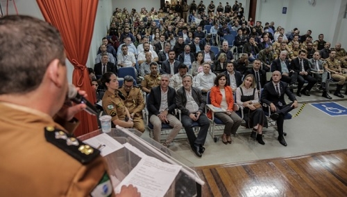 O 11° BPM de Campo Mourão realizou solenidade nesta quinta-feira, no auditório do Integrado, para comemorar os 169 anos da Polícia Militar do Paraná. Houve homenanges a 22 policiais. Entre os presentes, o prefeito Tauillo Tezelli, o presidente da Comcam, Xandão Donato (Corumbataí do Sul), o deputado Douglas Fabricio e seis vereadores de Campo Mourão. Uma das homenagens entregues, aliás, foi voto de louvor aprovado pela Câmara.
