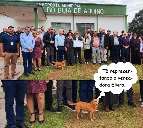O clic é desta sexta-feiia, no evento de assinatura da ordem de serviço que autorizou o início das obras do novo terminal do Aeroporto Municipal de Campo Mourão. Na hora da foto oficial, um simpático cachorro se postou à frente e fez até pose.