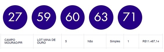 Foi sorteado nesta terça-feira concurso da Quina que estava com pêmio acumulado de R$ 19 milhões. Resultado? Ninguém acertou as cinco dezenas sorteadas e o prêmio deve ir para R$ 21 milhões no próximo sorteio. Já a quadra teve 79 apostas ganhadoras em todo o País, sendo uma delas de Campo Mourão. Foi feita na lotérica Mina de Ouro e ganhou R$ 11,4 mil.