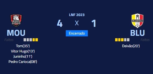Placar final no ginásio Belin Carolo: 4 a 1 (3 a 0 no primeiro tempo).