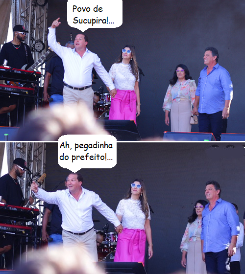 Os cliques são do último domingo, quando Boa Esperança realizou a Festa da Vaca Atolada. Teve prato típico, shows, muita gente e muitos políticos presentes. O prefeito Joel Buscariol e o vice Carlinhos Donato discursaram para multidão e tudo. E qualquer semelhança com gesto de Odorico Paraguaçu, o prefeito de Sucupira, é mera coincidência...