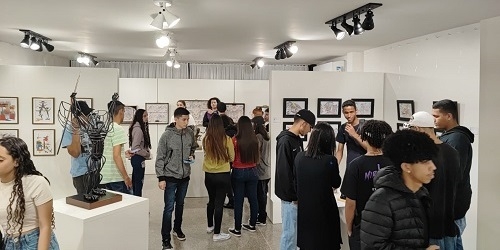 Cerca de 300 estudantes do Colégio Estadual de Campo Mourão foram ao Teatro Municipal visitar a exposição “Multi Verso”, que reúne obras do artista plástico Bernardo de Matos. Os alunos estavam acompanhados do professor Pixote, que também é artista plástico. A exposição marca a reabertura da sala, após 11 anos. Sala, aliás, que foi batizada com o nome de "Bernardo de Matos".