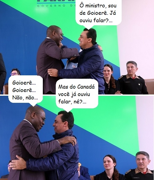 Os cliques são de Curitiba, que recebeu nesta quarta-feira o ministro dos Direitos Humanos e Cidadania, Silvio Almeida. O prefeito de Goioerê, Betinho Lima, acompanhou, com direito a se sentar Pa mesa principal e a dar um abraço no ministro. Betinho é o prefeito que esteve há poucos dias com o governador Ratinho Jr em missão no Canadá e nos EUA.