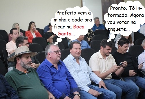 O clic é de sexta-feira, quando a Comcam fez reunião descentralizada em Mamborê. O prefeito anfitrião, Ricardo Radomski, aparece entre Airton Angolin (Nova Cantu) e Joel Buscariol (Boa Esperança), enquanto Rafael Bolacha (Moreira Sales) e Oclécio Meneses (Farol) dão uma conferida no smartphone...