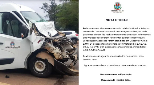 Uma van da Secretaria de Saúde de Moreira Sales se envolveu em acidente na tarde desta segunda-feira,