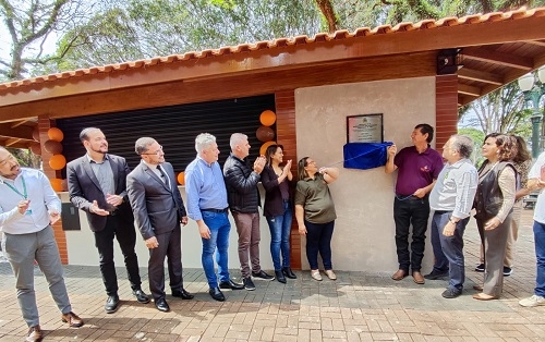 Ficou pronto o primeiro quiosque revitalizado do calçadão de Campo Mourão. É o café em frente ao Bradesco. Na manhã desta terça-feira teve inauguração com a presença de prefeito, deputado, vereadores e tudo mais. O investimento foi de R$ 145 mil. No total, serão quase R$ 1 milhão em reformas de oito quiosques (sem dinheiro público). Pela licitação, a concessão dos espaços é para 10 anos.