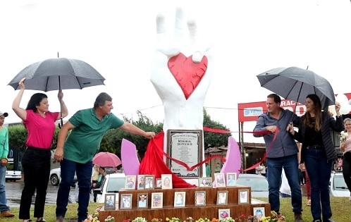 O prefeito de Boa Esperança, Joel Buscariol, inaugurou nesta segunda-feira um memorial em homenagem às vítimas da covid-19. A escultura foi feita pelo artista artista Renato Pereira Jaques, mas o desenho é do estudante Thiago Victor Fidelis de Lima, que venceu concurso com votação popular. O memorial inclui uma placa com os nomes dos 18 moradores do município que morreram em consequência da doença.