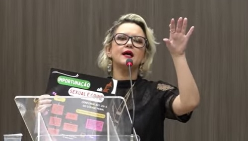 5) A presidente do Conselho Municipal dos Direitos da Mulher, Titina Spindola, usou a "Tribuna Livre" (foto). Falou sobre importunação sexual.