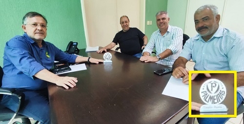 O empresário Alcione Jacob (Metalnorte e Força do Aço), que foi secretário de Desenvolvimento Econômico na gestão Nelson Tureck, se reuniu esta semana com o prefeito de Campo Mourão, Tauillo Tezelli. Estava acompanhado pelos vereadores Edilson Martins e Miltinho do Cidade Nova. Alcione presenteou o prefeito com um escudo do Palmeiras feito em chapa de aço. Tudo com recorte feito na empresa dele.