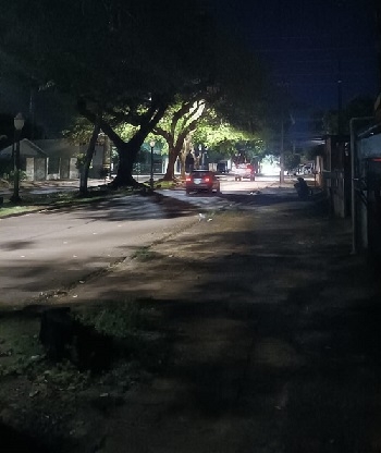"A atual iluminação da av. Jorge Walter, próximo ao mercado Paraná. Era uma das avenidas mais bem iluminadas. Hoje está assim. Fácil para os bandidos darem o bote. Lâmpadas leds foram instaladas nos postes altos no meio dos galhos das árvores. E você que faz caminhada pela Jorge Walter, o que achou da nova iluminação? Cuidado com os assaltos".
