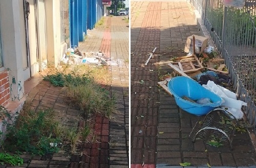 Sujeira na rua São Josafat, entre as avenidas Capitão Índio Bandeira e Irmãos Pereira.