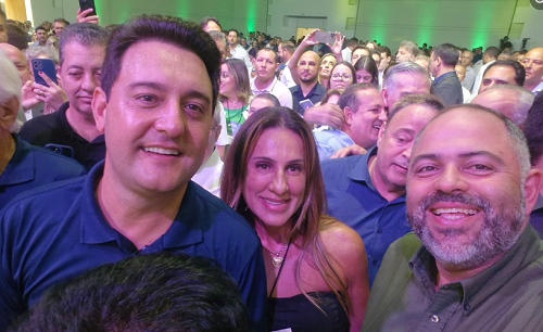 A maioria dos prefeitos do Estado está em Foz do Iguaçu, onde participa do evento “Paraná Mais Cidades”, promovido pelo governo estadual. Douglas Fabrício, de Campo Mourão, é um deles. O governador Ratinho Jr discursou na abertura e não foi todo mundo que conseguiu ficar ao lado dele para uma foto. A prefeita Joelma Demeneck, de Juranda, conseguiu.