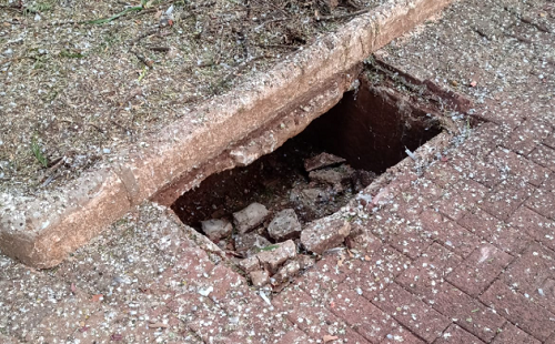 Bueiro aberto na praça Getúlio Vargas, em Campo Mourão.