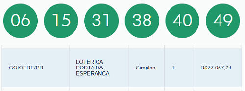Ninguém acertou as seis dezenas da Mega Sena sorteadas nesta quinta-feira. Assim, o prêmio segue acumulado e deve chegar a R$ 100 milhões no próximo sorteio, sábado. A quina teve 61 apostas ganhadoras, sendo cinco no Paraná e uma delas feita na lotérica Porta da Esperança, em Goioerê. Faturou R$ 77,9 mil.