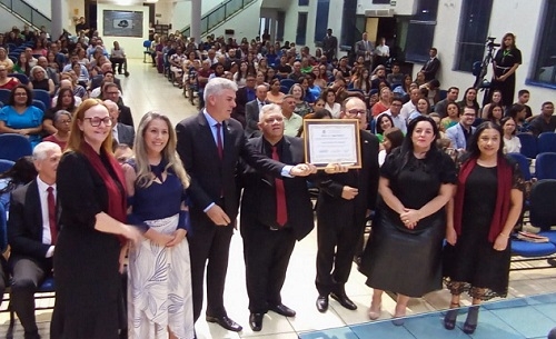 A Câmara de Campo Mourão realizou sessão solene na última sexta-feira à noite. Foi para entrega de moção ao delegado-chefe da 16ª SDP, Nilson Rodrigues da Silva, pelo trabalho da Polícia Civil durante a 30ª Festa Nacional do Carneiro no Buraco. A entrega foi feita pelo vereador autor da homenagem, Jadir Pepita, e pelo prefeito Douglas Fabrício. Sete vereadores participaram da sessão.