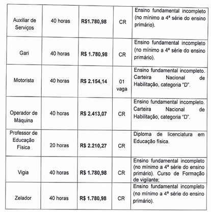 A prefeitura de Boa Esperança abriu Processo Seletivo Simplificado para sete cargos. As inscrições são gratuitas e seguem até o próximo dia 7. Podem ser feitas diretamente na prefeitura ou por e-mail. Os salários variam de R$ 1,7 mil a R$ 2,4 mil. Apenas para motorista há uma vaga imediata. O restante é para cadastro de reserva.