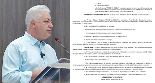 O prefeito de Campo Mourão, Douglas Fabrício, sancionou a lei que institui o programa Todos na Escola.