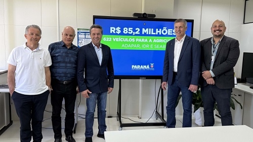 O governo do Estado anunciou nesta semana a aquisição de 622 veículos destinados à Secretaria da Agricultura e do Abastecimento, ao IDR-Paraná e à Agência e à Adapar. O investimento é de R$ 85,2 milhões. O contrato de aquisição já está firmado e a previsão final de entrega é para 2026.