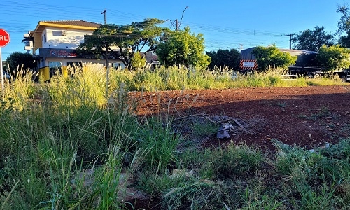“Situação do terreno na av. Jorge Walter esquina com rua Mato Grosso. Muito mato favorecendo a proliferação de insetos e mosquito transmissor da dengue”.
