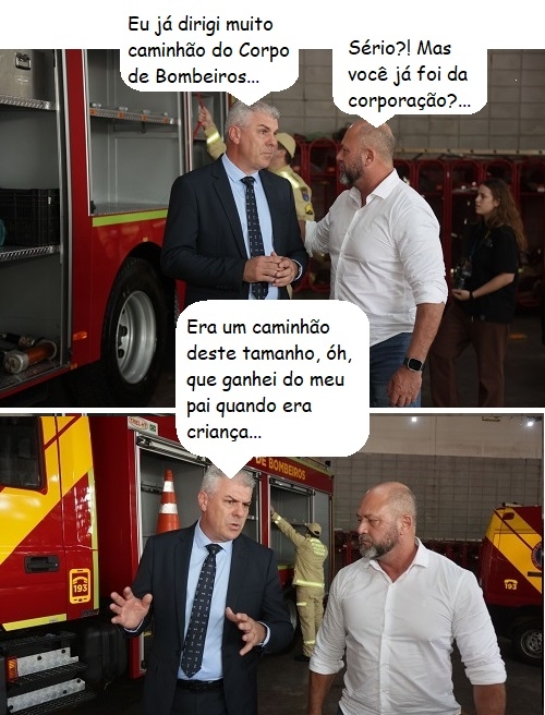 Os cliques são desta sexta-feira, durante a entrega do novo caminhão para o Corpo de Bombeiros de Campo Mourão. O vereador Edilson Martins, autor do pedido na Câmara, aproveitou para conversar com o secretário de Estado coronel Hudson Teixeira (Segurança Pública), que estava presente. O caminhão custou R$ 1,5 milhão e veio para substituir outro, destruído pelo fogo.