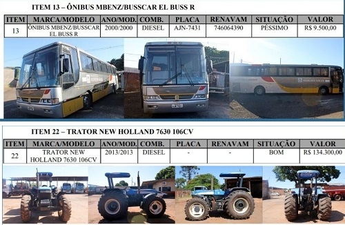 O mais barato é um ônibus Mercedes Benz, ano 2000, com lance inicial de R$ 9,5 mil.