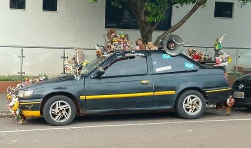 Carro todo "enfeitado" chama a atenção no centro de Campo Mourão.