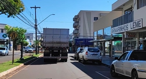 Caminhão passa pelo centro de Campo Mourão (av. Manoel Mendes de Camargo), às 15h desta terça-feira.